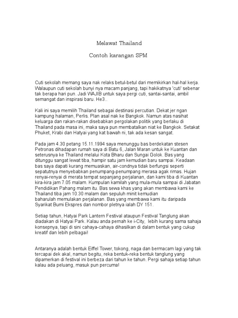 Karangan Tempat Menarik Di Malaysia. Bincangkan Karangan SPM Pada era kontemporari ini isu berkaitan PELANCONGAN meniti dari bibir ke bibir masyarakat seanter negara. 33 Pentaksiran Tingkatan 3.
