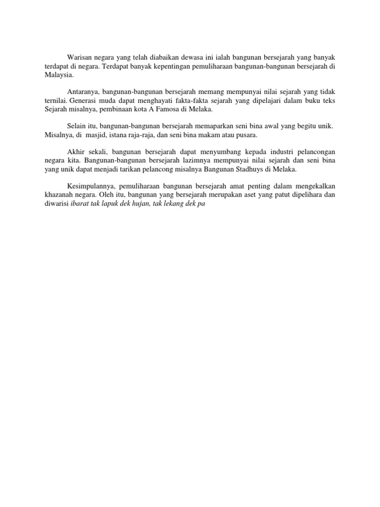 Jika ingin menjatuhkan sesuatu bangsa musnahkan warisan dan pesongkan sejarahnya. Pelancongan Warisan Pelancongan warisan secara umumnya merupakan satu bentuk pelancongan untuk melihat segala khazanah warisan yang telah diwarisi daripada generasi terdahulu seperti sejarah kebudayaan kesenian alam semulajadi artifak dan lain-lain Razak 2006. Walau bagaimanapun mereka tidak selalu bekerjasama walaupun mereka sepatutnya menjalinkan satu kerjasama yang erat.