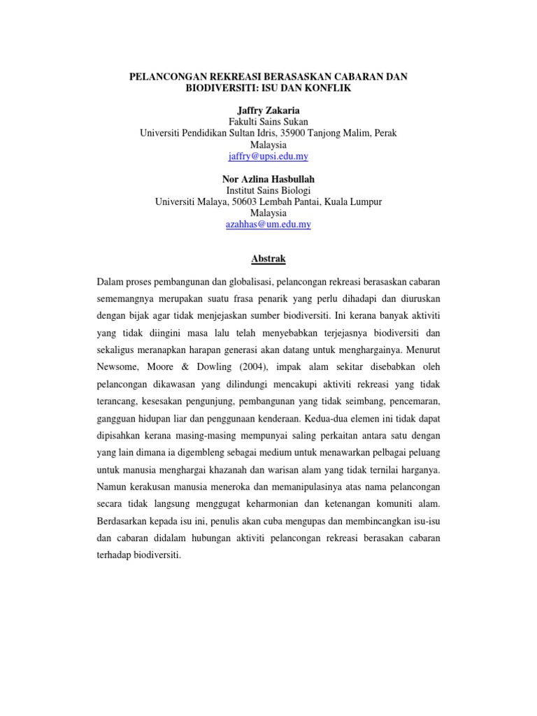 Pelancongan Rekreasi Berasaskan Cabaran Dan Biodiversiti Pdf